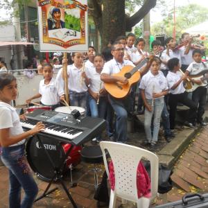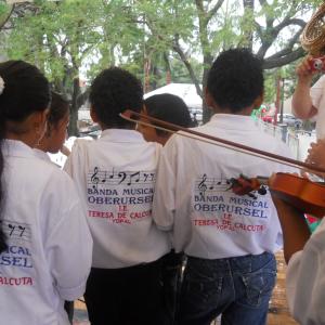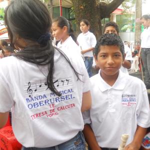 Edmundo Pérez fährt regelmäßig nach Yopal, um den Kontakt zur Schule « Teresa de Calcuta » zu pflegen. Der Aufbau der schulinternen Musikgruppe « Banda Musical Oberursel » macht große Fortschritte. Sowohl durch unser letztes Hoffest 2014 als auch durch das GO-Benefizkonzert vom 29. April 2015 konnten Fortschritte erzielt werden. In einer E-Mail im Juli 2013 bat uns die Schulleiterin Luz Mila Castillo ganz offiziell um konkrete Hilfe für die Anschaffung von einigen Musikinstrumenten zum Aufbau einer Band. – Wir hatten die Schule 2012 mit einer Oberurseler Reisgruppe besucht. - Mit den Spenden des 2014 veranstalteten Benefizkonzertes und dem Hoffest 2014 konnten u. a. ein Schlagzeug, ein Keyboard, ein Paukenset, fünf Gitarren und zwei Geigen angeschafft werden. Als Zeichen der Dankbarkeit wählte man 2014 in Yopal für die Musikband den Namen:
